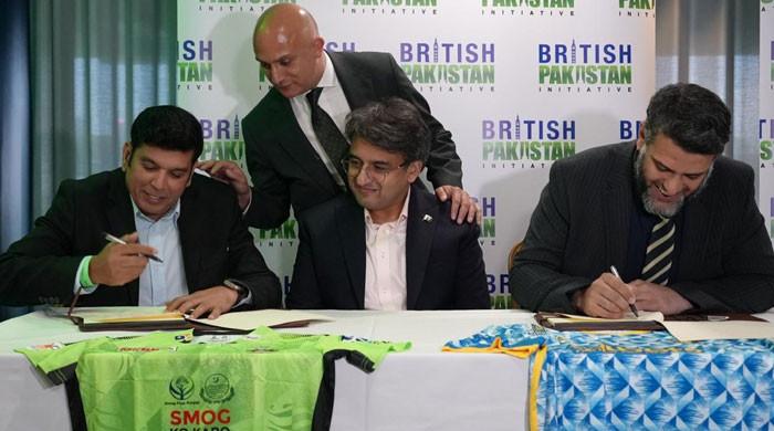 Lahore Qalandars owner Sameen Rana (left) and Warwickshire County Cricket Club Finance Director Abraham Khan sign an MoU on August 31, 2025. — Reporter